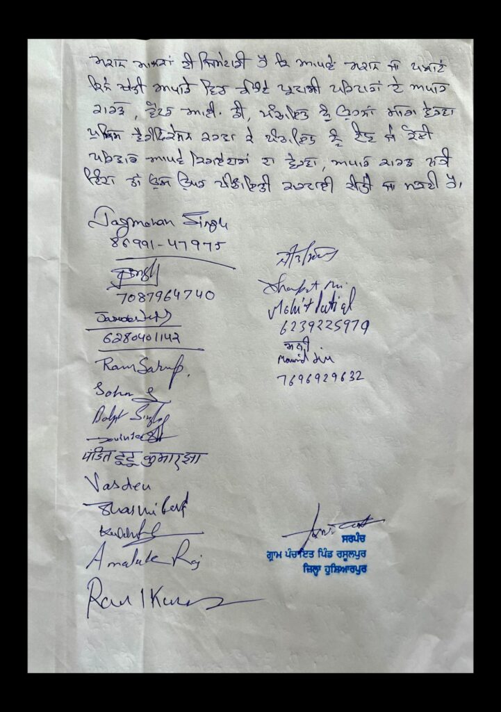ਪਚਾਇਤੀ ਮਤਾ ਗ੍ਰਾਮ ਪਿੰਡ ਰਸੂਲਪੁਰ ਅਤੇ ਬਸੀ ਬੱਲੋ