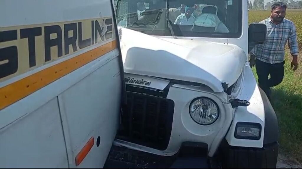 ਫਿਰੋਜ਼ਪੁਰ : ਅੱਜ ਸੁਖਬੀਰ ਸਿੰਘ ਬਾਦਲ ਦੇ ਕਾਫਲੇ ਨਾਲ ਵੱਡਾ ਸੜਕ ਹਾਦਸਾ ਹੋ ਗਿਆ। ਮਿਲੀ ਜਾਣਕਾਰੀ ਅਨੁਸਾਰ, ਪੁਲਿਸ ਦੀ ਇੱਕ ਤੇਜ਼ ਰਫਤਾਰ ਬਸ ਨੇ ਕਾਫਲੇ ਵਿੱਚ ਸ਼ਾਮਲ ਦੋ ਫੋਰਚੂਨਰ ਕਾਰਾਂ ਅਤੇ ਪਿੱਛੇ ਆ ਰਹੀ ਡੀਐਸਪੀ ਇੰਦਰਜੀਤ ਸਿੰਘ ਦੀ ਥਾਰ ਨੂੰ ਟੱਕਰ ਮਾਰ ਦਿੱਤੀ।