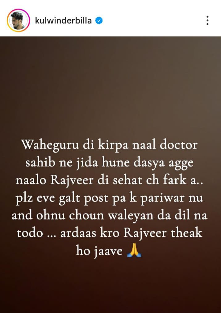 Homeਰਾਜਵੀਰ ਜਵੰਦਾ ਦੀ ਸਿਹਤ ‘ਚ ਹੋਇਆ ਸੁਧਾਰ ਰਾਜਵੀਰ ਜਵੰਦਾ ਦੀ ਸਿਹਤ ‘ਚ ਹੋਇਆ ਸੁਧਾਰ September 28, 2025September 28, 2025byThe news insights ਰਾਜਵੀਰ ਜਵੰਦਾ ਦੀ ਸਿਹਤ ‘ਚ ਹੋਇਆ ਸੁਧਾਰ, ਡਾਕਟਰਾਂ ਮੁਤਾਬਕ ਕੱਲ੍ਹ ਨਾਲੋ ਫ਼ਰਕ ਨਜ਼ਰ ਆ ਰਿਹਾ ਹੈ, ਕੁਲਵਿੰਦਰ ਬਿੱਲਾ ਅਤੇ ਰਣਜੀਤ ਬਾਵਾ ਨੇ ਸਵੇਰੇ ਫੋਰਟਿਸ ਹਸਪਤਾਲ ‘ਚ ਜਵੰਦਾ ਦਾ ਹਾਲ ਜਾਨਣ ਮਗਰੋਂ ਜਾਣਕਾਰੀ ਦਿੱਤੀ ਹੈ।ਸਾਰੇ ਇਸ ਨੌਜਵਾਨ ਦੀ ਸਿਹਤਯਾਬੀ ਲਈ ਅਰਦਾਸ ਜਰੂਰ ਕਰੋ 🙏ਵਾਹਿਗੁਰੂ ਭਲੀ ਕਰੇ 🙏