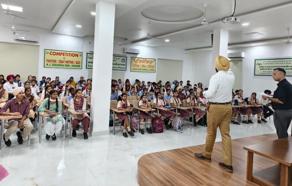 ਚੰਡੀਗੜ੍ਹ, 3 ਅਕਤੂਬਰ 2025 : ਛੱਤਬੀੜ ਚਿੜੀਆਘਰ ਵਿੱਚ ਅੱਜ ਵਨ ਜੀਵ ਹਫ਼ਤਾ 2025 ਸਮਾਰੋਹ ਮੌਕੇ ਰੰਗ-ਬਰੰਗੀਆਂ ਗਤੀਵਿਧੀਆਂ ਦਾ ਆਯੋਜਨ ਕੀਤਾ ਗਿਆ, ਨੇੜਲੇ ਇਲਾਕਿਆਂ ਦੇ 20 ਸਕੂਲਾਂ ਦੇ ਕੁੱਲ 260 ਵਿਦਿਆਰਥੀਆਂ ਨੇ ਪੇਂਟਿੰਗ (ਜੂਨੀਅਰ ਤੇ ਮਿਡਲ ਸ਼੍ਰੇਣੀ), ਲੇਖ-ਲੇਖਨ (ਮਿਡਲ ਤੇ ਸੀਨੀਅਰ ਸ਼੍ਰੇਣੀ) ਅਤੇ ਕਵਿਜ਼ ਮੁਕਾਬਲਿਆਂ ਵਿੱਚ ਹਿੱਸਾ ਲਿਆ। ਬੱਚਿਆਂ ਨੇ ਵੱਡੇ ਉਤਸ਼ਾਹ ਨਾਲ ਹਿੱਸਾ ਲੈਂਦਿਆਂ ਸਮਾਰੋਹ ਨੂੰ ਸਫ਼ਲ ਬਣਾਇਆ।